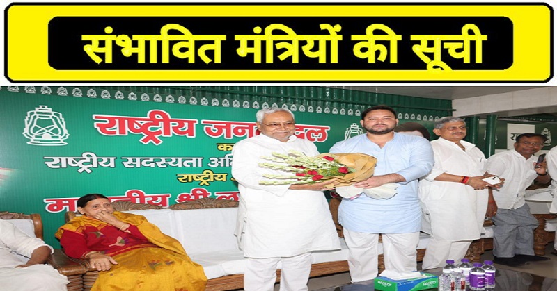 सूत्रों के मुताबिक तय फॉर्मूले के तहत RJD को 16 मंत्री पद मिले हैं, जबकि JDU के खाते में 13 और कांग्रेस के 4 विधायक मंत्री बन सकेंगे। 12 विधायकों वाली CPI(ML) ने सरकार में शामिल होने पर अभी कोई फैसला नहीं लिया है। हम आपको नई कैबिनेट में शामिल होने वाले संभावित मंत्रियों की सूची बता रहे हैं। हालांकि इनमें तेजप्रताप यादव, संजय झा, विजय चौधरी, भाई वीरेन्द्र का मंत्री बनना तय है।
