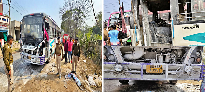ये बड़ा हादसा नालंदा के राजगीर-गिरियक मार्ग में हुई है। जानकारी के मुताबिक लखीसराय जिले के अलसी प्रखंड के गरुआ पुरसंडा मध्य विद्यालय से एजुकेशनल टूर पर राजगीर पहुंची एक बस में धू-धूकर आग लग गई। इस बस में तकरीबन 50 स्टूडेंट्स और टीचर्स मौजूद थे लेकिन बस के इंजन से धुआं निकलते देख बस चालक ने सूझबूझ का परिचय दिया और तुरंत सभी बच्चों और शिक्षकों को बस से सकुशल उतार दिया। हालांकि, इस हादसे में किसी भी तरह की जानमाल की क्षति नहीं पहुंची है।