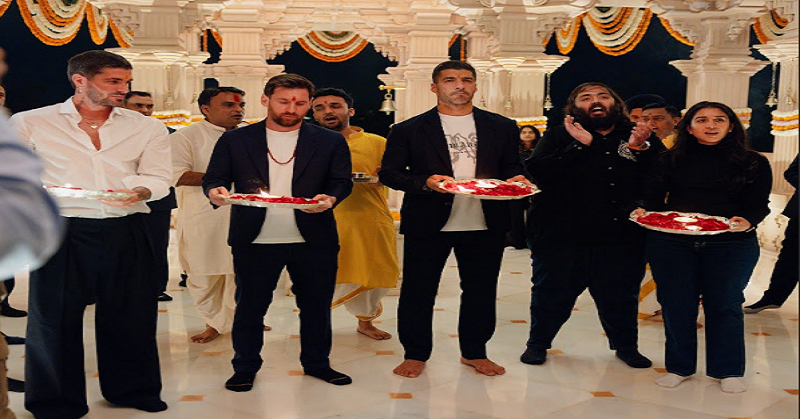 मेस्सी अपने इंटर मियामी के साथी खिलाड़ियों लुइस सुआरेज़ और रोड्रिगो डी पॉल के साथ पहुंचे, जहाँ उनका भव्य पारंपरिक शैली में स्वागत किया गया। स्वागत में जीवंत लोकसंगीत, आशीर्वाद और शुभ भावना का प्रतीक पुष्पवर्षा, तथा औपचारिक आरती शामिल थी। फुटबॉल दिग्गज ने मंदिर में महा आरती में भी भाग लिया, जिसमें अंबे माता पूजा, गणेश पूजा, हनुमान पूजा और शिव अभिषेक सम्मिलित थे। इस अवसर पर विश्व शांति और एकता की प्रार्थना की गई, जो भारत की सभी जीव-जंतुओं के प्रति श्रद्धा और सम्मान की शाश्वत परंपरा के अनुरूप है।